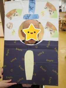 顔はめパネルを作り、利用者様と楽しい写真を撮りました。