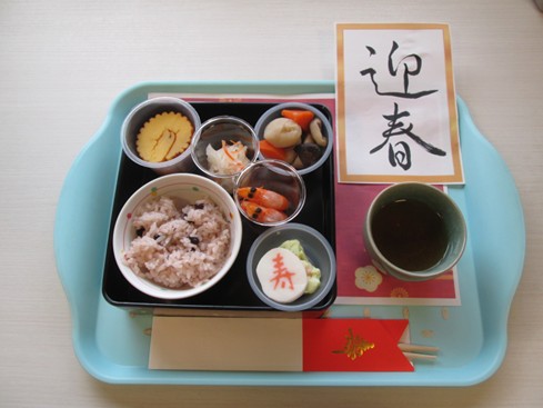 グループホームしあわせ🌸お正月 2026/01/02 元旦のお食事です。 お正月の雰囲気を味わっていただきたくて、一筆添えて提供させていただきました。 カテゴリ│お食事等, しあわせ日記, 未分類 タグ│