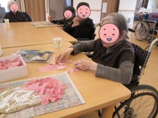 この日は皆さんと一緒に桜の壁画を作成しました。